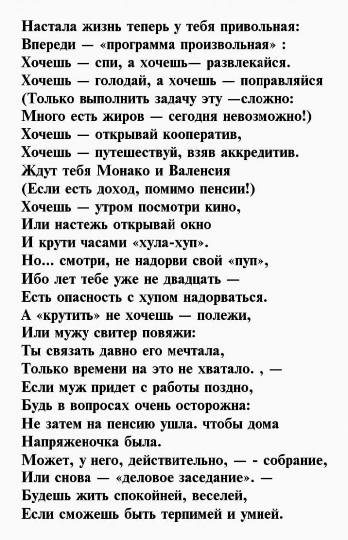 настала: Веселись, гуляй и пой. Ты пенсионеркой стала стихи: