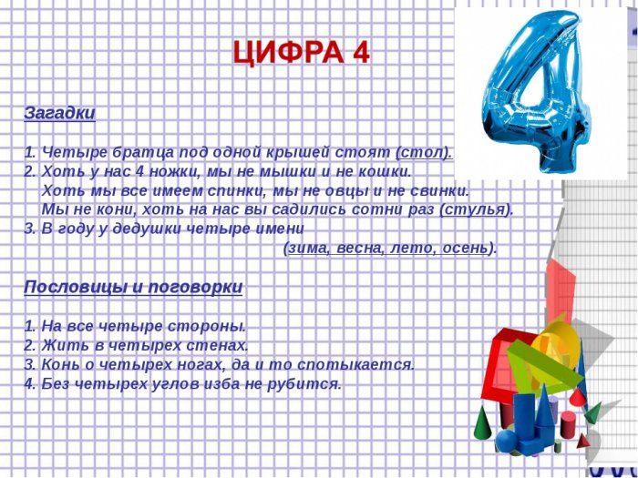 Ребята, продолжаем счет…Все время четыре