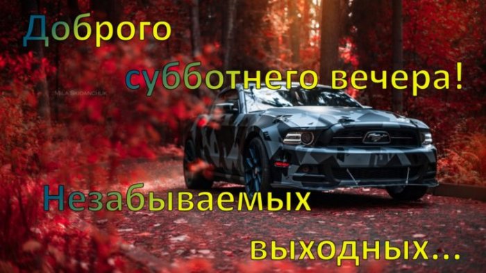 Картинка с пожеланиями ОТКРЫТКУ ЭТОЙ ЦИТАТОЙ:своем авто, в субботний вечерок, по осеннему лесу