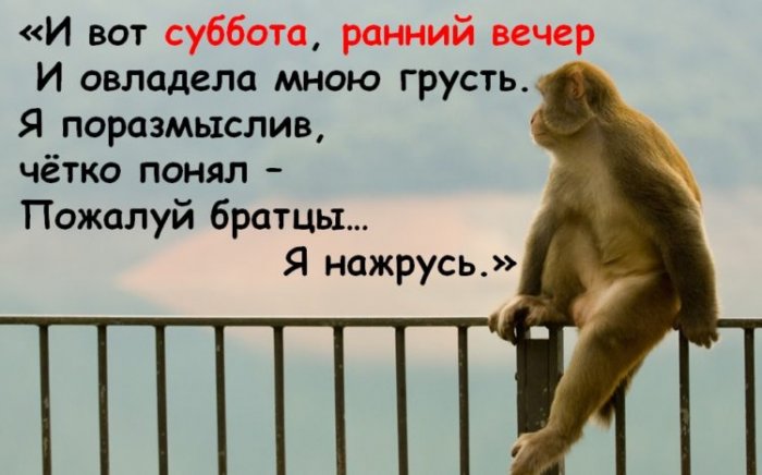 овладела мною грусть. Я поразмыслив, чётко понял — пожалуй братцы… Я нажрусь.» Доброго субботнего вечерочка просто незабываемы.