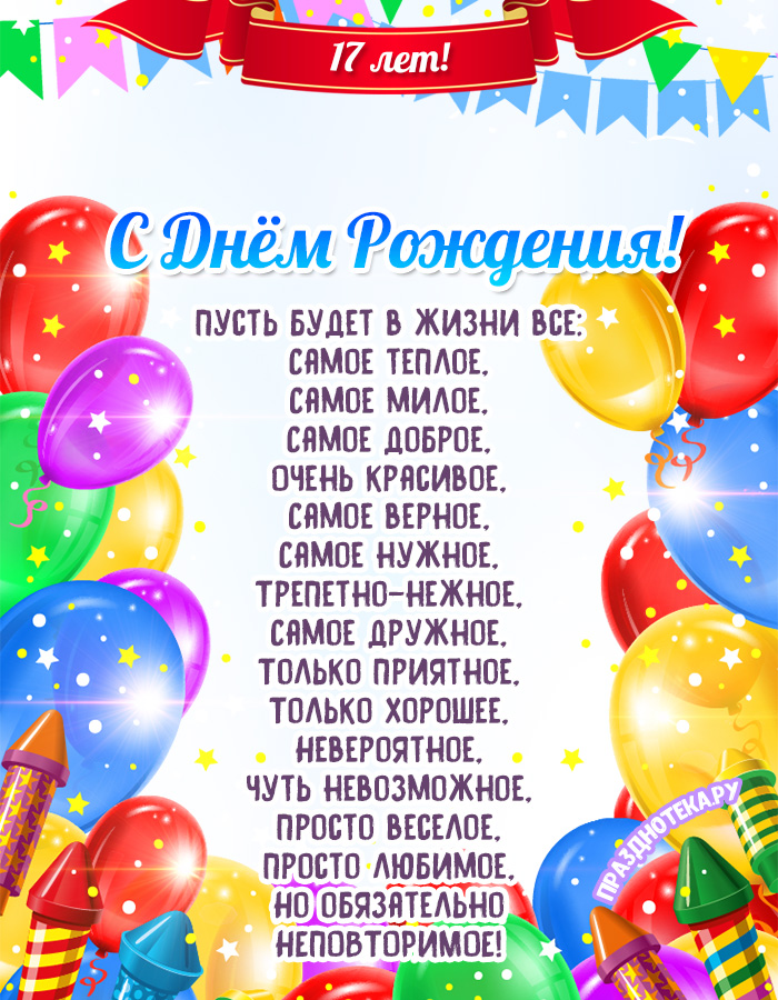рождения 17 лет поздравлениями, непременно поможет выразить