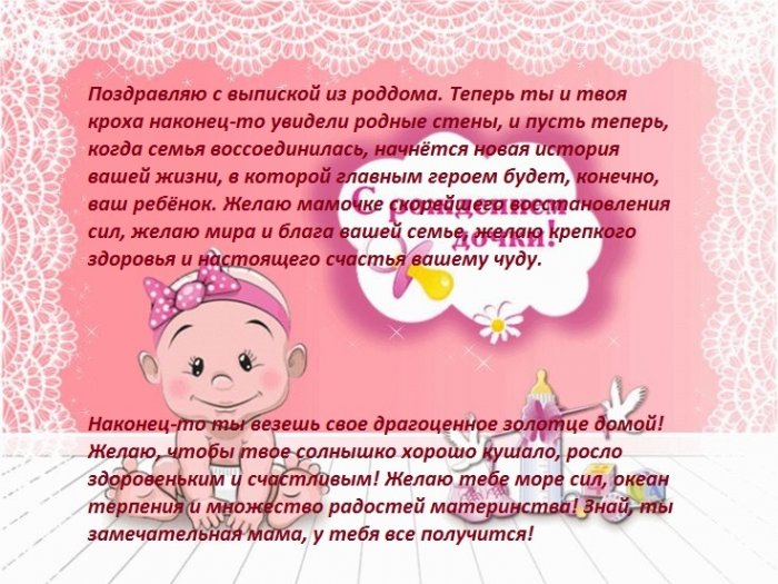 из роддома. Желаю скорее радоваться сильно и всегда.