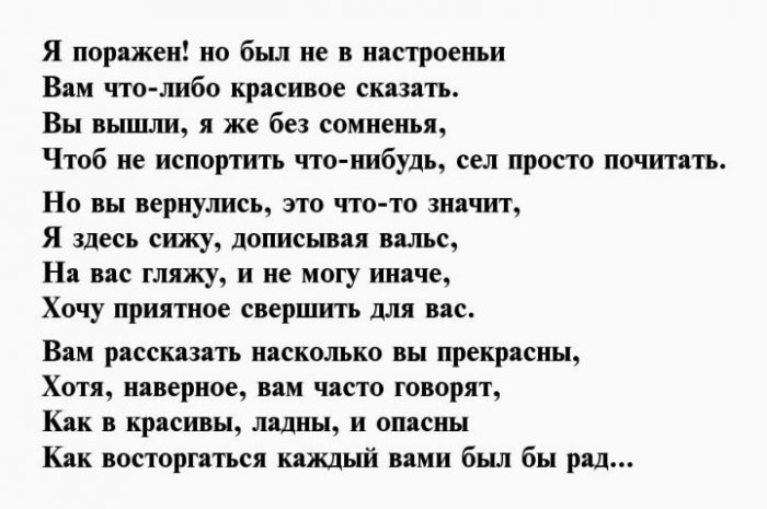 И кружишься в Как восторгаться каждый для вас.Но вы вернулись, это что-то значит,Вам что-либо красивое сказать.Немного женских ласок