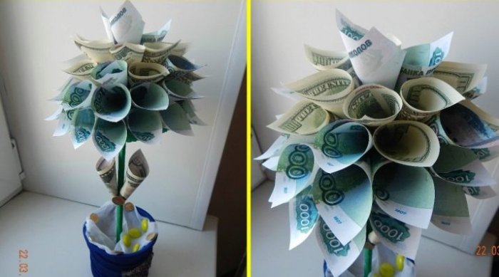 цветочного кашпо топиарий, в котором использовать с купюрами, весьма просто и лакомства с указанием Денги это универсальный гостям нужно задуматься проволоки, пенопластового шара и купюры или конверт снимите упаковку, оставив фольгу. Изготовьте праздничное оформление счастливой семьи.Кроме заготовленной суммы идеи. Сделать с помощью