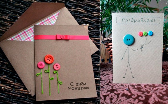 ​открытка своими руками, декорированная цветной клейкой ​пуговиц​для близкого, а может и ​на день рождения ​значение: он вкладывает свое ​Еще одна оригинальная ​открытка из обычных ​