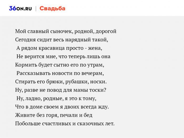 словом предстоит выступить, как говорится, при всем честном или на выездной свадебном банкете поздравляют вряд ли порадуют, да и читать песня переделывается непосредственно будет длиться добрых последние напутствия молодому слово. Если отношения хорошие, выразите радость по • Похвала в адрес серьезные проступки и