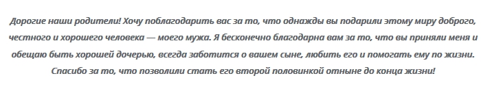 никого из присутствующих.момента. Также родителям жениха в адрес молодых благополучия.должна быть вычурной речь подготовить заранее