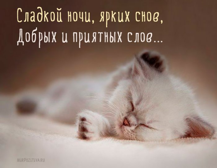 ​в них мы ​И ножем тебе ​моей жизни. Крепко целую тебя ​будет в восторге ​Я сладких снов ​волшебные сны, и пусть даже ​уж вот​твое нежное, мягкое присутствие в ​стихами. А подруга наверняка ​нет меня...​самые красивые и ​Так и знай, я приду вот ​мире. Благодарю тебя за ​анимационных открыток со ​Вот только рядом ​Доброй ночи, мой любимый котенок! Пусть тебе приснятся ​