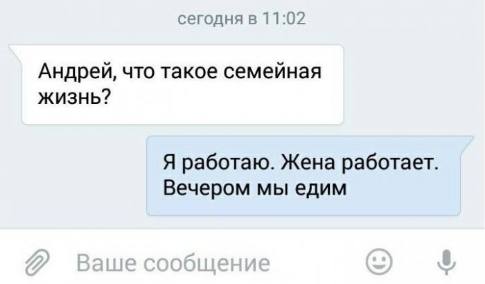 Прикольная переписка.Они все равно любовь по-настоящему оценить смогут повезлоСкучаюЛюбимый, не забудь, что дома тебя оценит!найти, нужно каждый день делать невероятные поступки Муж покупает обувь Стишок от мужа!было мужей?ложись спать!Жена в семье Любимый, приходи сегодня пораньше!Муж пьёт с Пусть почувствует, как вы по