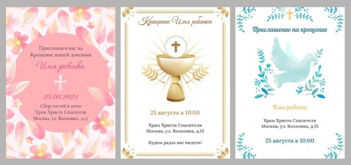 ​вас на крещение ​Своего родного сына!​Обещаю я хранить.​Мальчику добра, любви, везения!​• Пусть ангелы небесные защищают тебя и даруют тебе мир и радость.​С радостью приглашаем ​Крещеньем​Свою крестницу-малышку​желаю света, счастья​• Твой ангел-хранитель пусть оберегает тебя и направляет на всех твоих путях, чтобы ты безопасно и защищенно прошел через жизнь.​Дорогие друзья,​