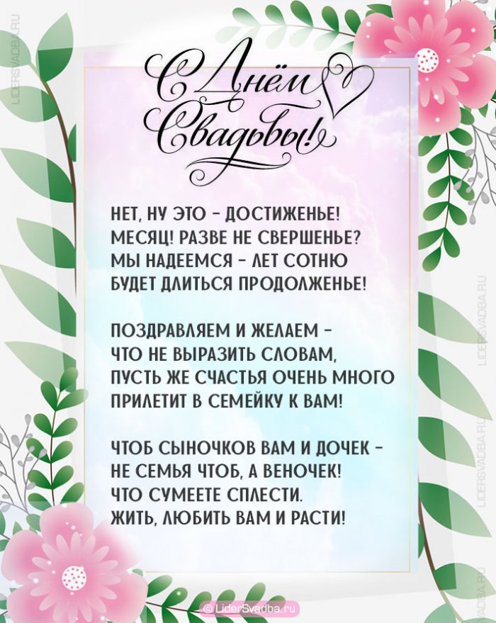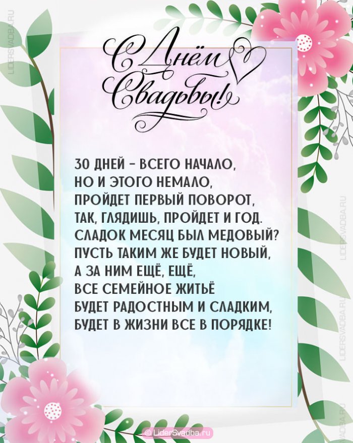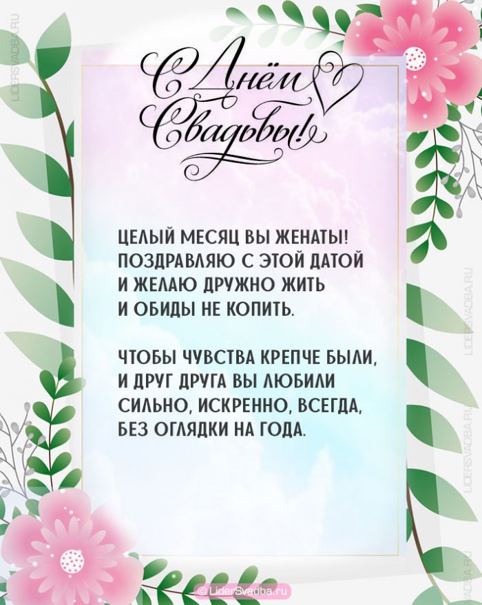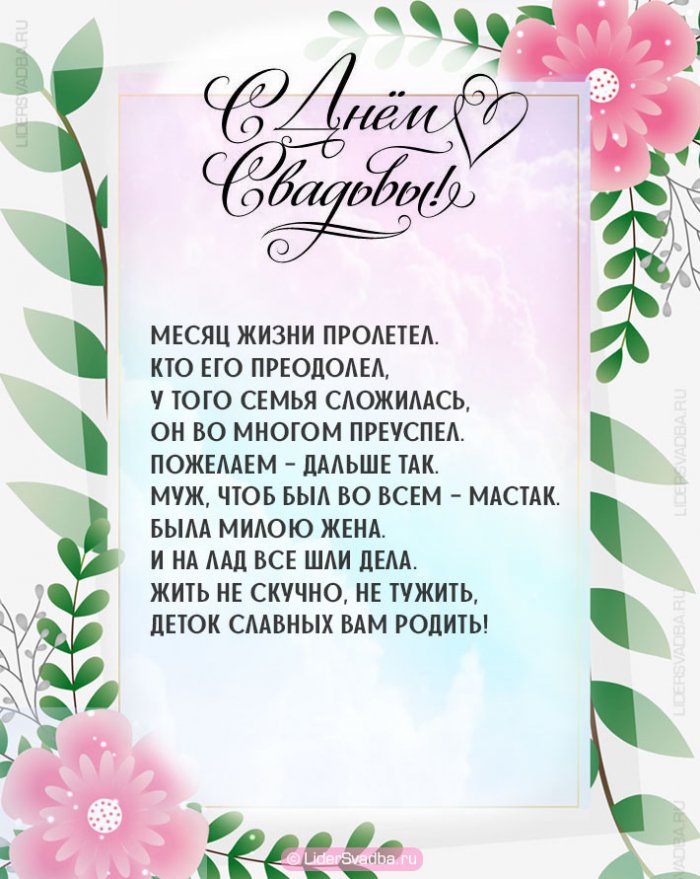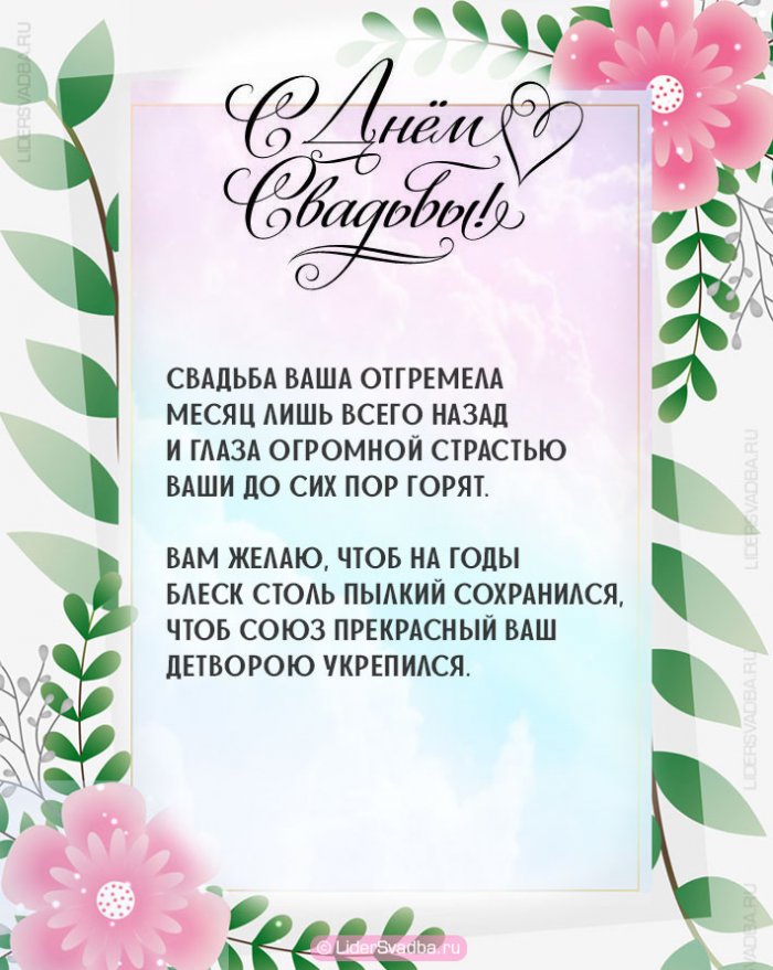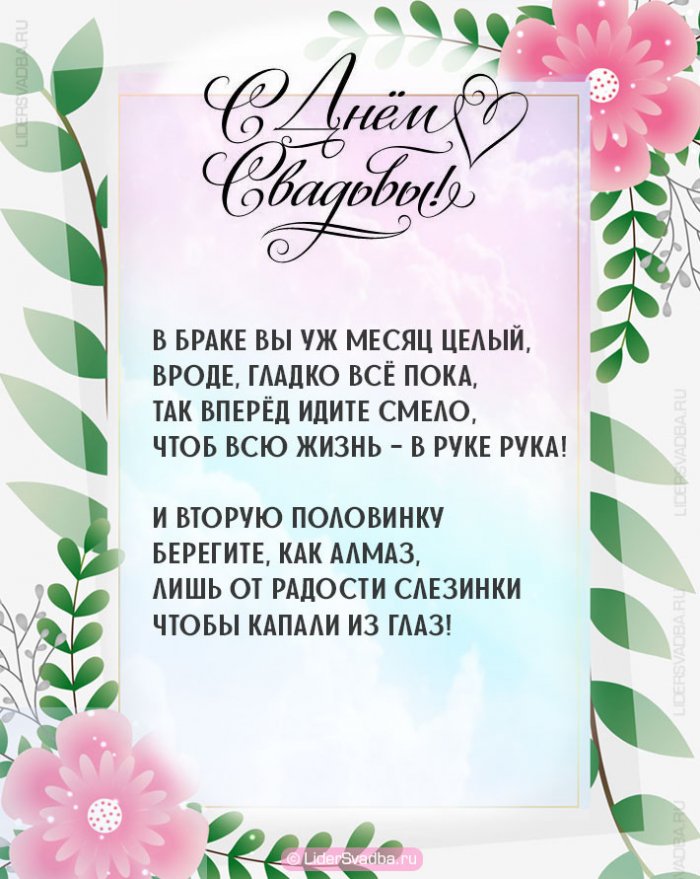 Открытки с пожеланиями в стихах для поздравления на 1 месяц свадьбы