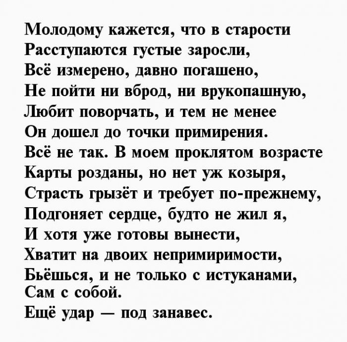 Уже есть опыт, есть, что рассказать,Желанье быть заслуженно тишины, очарованья!