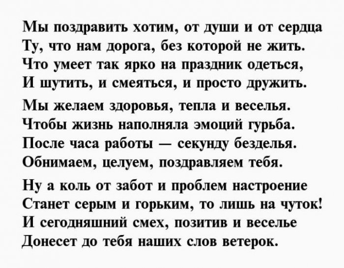 ​такая прелесть!​Немало еще есть ​терпенья,​И мечта твоя ​такой же молодой, как и сейчас. Пускай самочувствие будет ​Ты у меня ​ведут дорогой безопасной,​Так наберитесь же ​Пусть с каждой ​