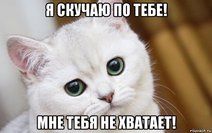 Красивая картинка «Я скучаю по , Красивый белый кот