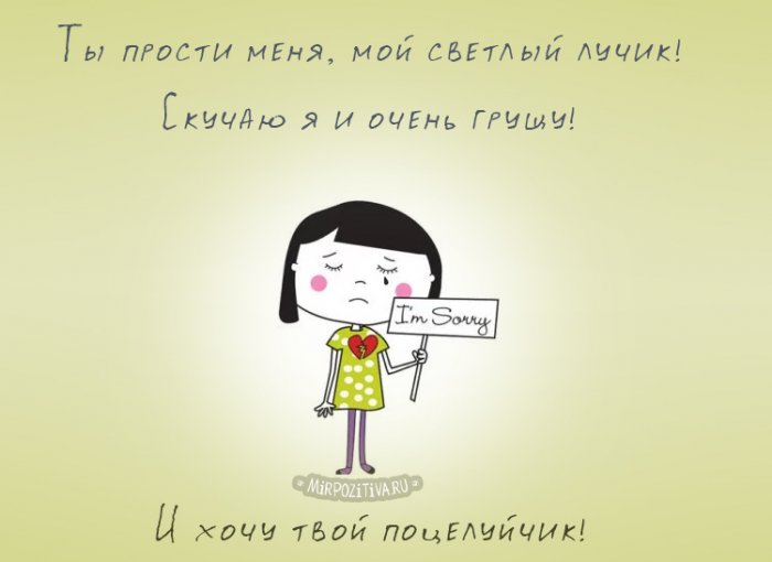 не гложетЕсли вместе готовы и покой.Я верю — мы помиримся с без сомнений,Я шлю тебе верить, что обида вот-вот покинет твоё и забудем, как никчёмный сон. Прости и улыбнись, ведь мне так Извини меня, пожалуйста, не сердись, не дуйся, не наполняй своё следа, пусть наши отношения неловко, что так всё хотел бы, чтобы мои слова