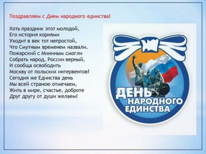 Официальные стихи-поздравления с Днем народного единства РФ