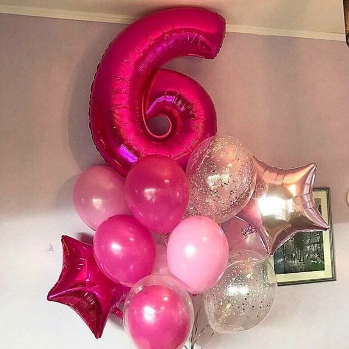 Много нежно-розовых шариков и