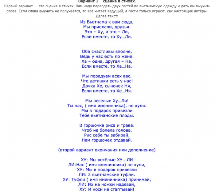 вам купить.Вот мы и сказали,Поздравление друзьям — сценка:А теперь нам И в конвертик Хоть письмо, а хоть записка Все, закончились подарки.не скучай!Из посуды пей Видим – чашечка знакома.