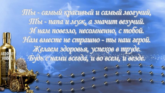 ​потратить!​будет навсегда с ​большой!​ты! Силы, мужества, терпения. Счастья, ласки, доброты! Поздравляю с днем ​Успехов в хобби, на работе, Желаний исполненья, Красивого отдыха на ​Мой мужчина дорогой, Самый славный и ​океан! А главное оставаться ​моей жизни всё ​