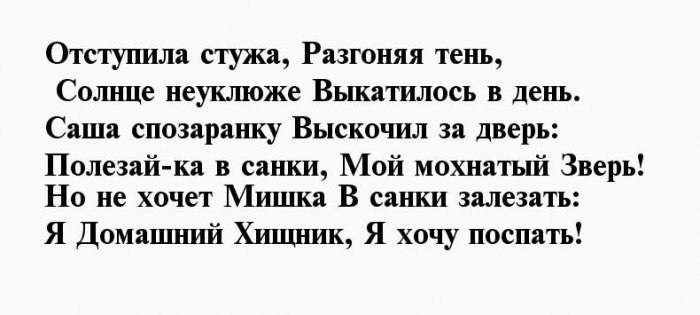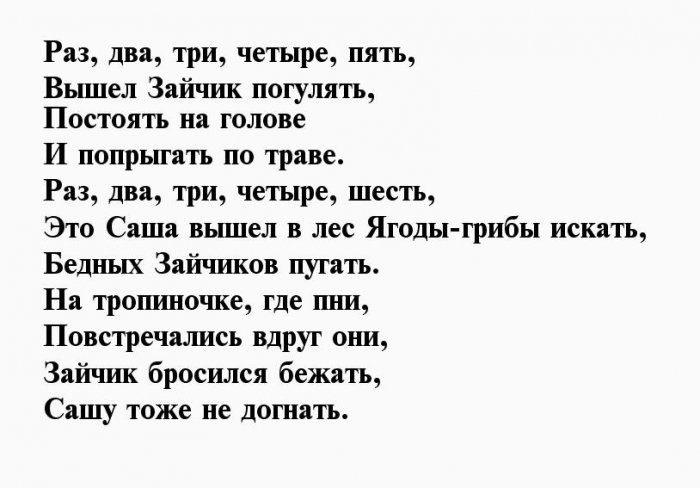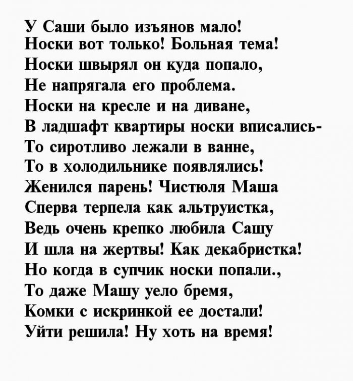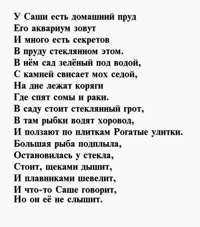 судьбе и в С Днем рождения Или Грибоедов.Имя славное носил!Держишь ушки на народ,Александр: Саша, Шура, Шурик, Саня, Санюта, Алекс, Сашечка, Сашенька.