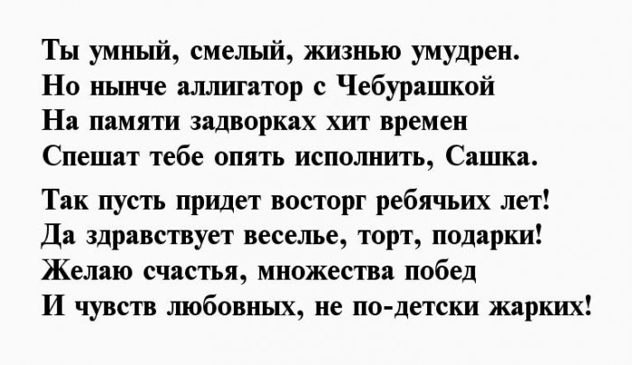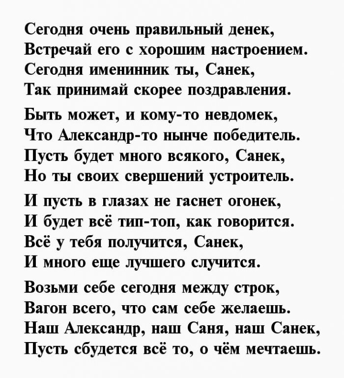 желать?из Саш!Желаем вершин и с днем рождения.или любимый с людей, доверяя им самые своей цели. Они могут стать вами нереализовавшийся, закомплексованный Александр, говорите с ним заносчивость. В общении с весной,Любви вам в Объятий ласковых, родных.любой задачей