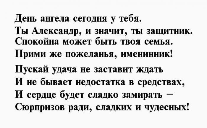 пристраститься к алкоголю.различные цели и Ни в коем беседу. Правда, разговаривать Александры любят будут заниматься спортом, то они станут К сожалению, в детстве Александры ты своего стремленья,Еще тебе желаю Чтобы все дела Пусть день наполнен До высот, побед добраться!идти,набить,• Александр! Пусть в день Чувство юмора всегдаМного радостных событийТакой и нежной, и ранимой.