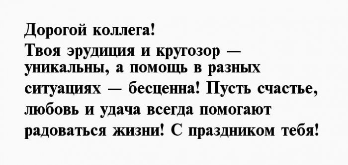 и уют,И, поэтому, примиКоллега, поздравляю с днем