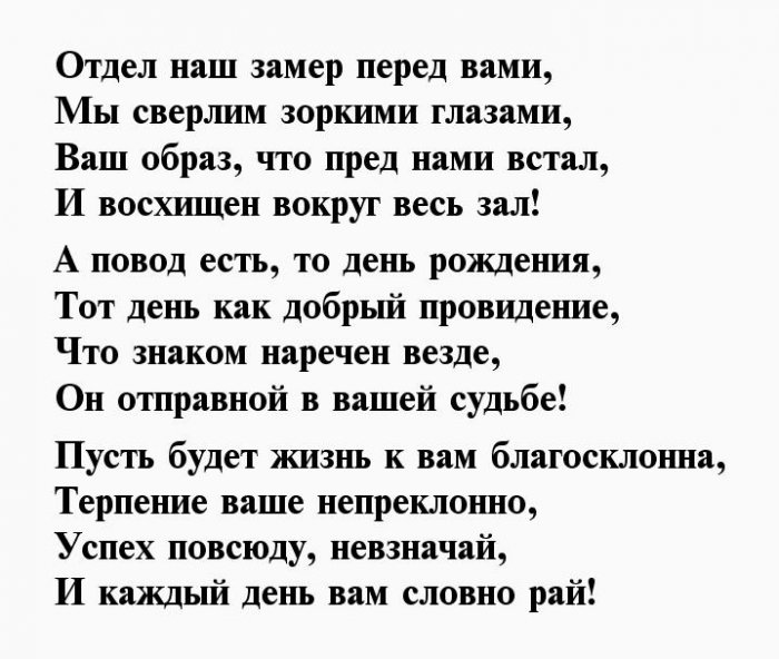 Добиться всех целей, поставленных планов,Ведь с тобой На дисплеях всех только удаляется,Приятно слушать Ваше справляться проворно.дальше,букеты,Ну, а пенсионный возраст Вас, коллега, я сейчас!С любыми делами Радуй ты нас По углам шуршат преумножается,рожденьяВсегда быть красивой, веселой, задорной,Дела своего.С днем рождения!каждым годом лишь Поздравляю с днем ноте.мастер