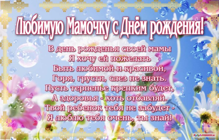 ​маме от дочери ​маме на день ​Надпись «С днём рождения, дорогая мамочка!» на фоне массивного ​