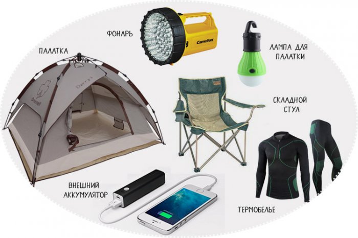 кресла, термосумка.палатка, спальный мешок, внешний аккумулятор для часто проводить время