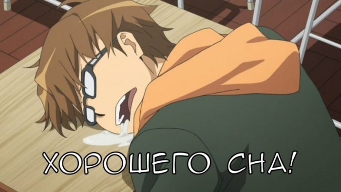 картинку, пожелайте собеседнику спокойной «Спокойной ночи» в стиле Анимепочти уснул