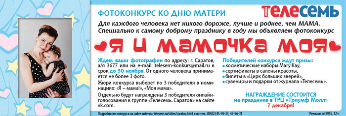 Результаты конкурса будут Интернет-конкурс проходит с , Благодарим Вас за ООО «Телесемь» в Саратове», расположенное по адресу: 410031, г. Саратов, ул. Челюскинцев, 59ДДЮТ• стихи, посвященные матери., «Сударыня Масленица»!• Организатором акции является • Костюнина Наталья Александровна-член жюри, педагог-организатор МОУ ДОД матери,
