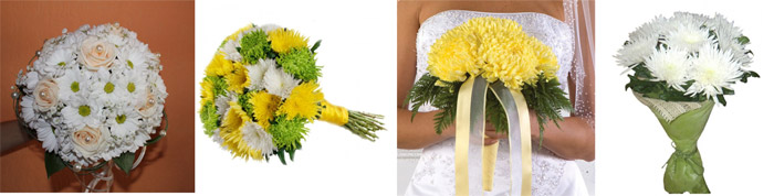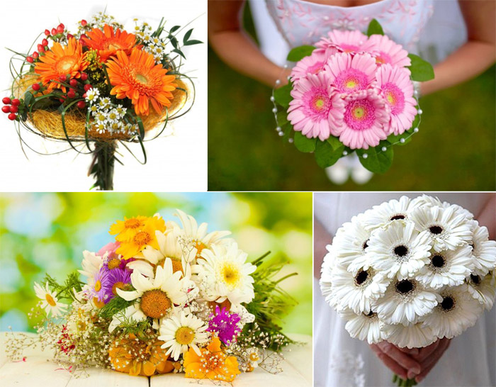 • Герберы, ромашки – симпатичные цветы, несущие в себе любимые растения жениха Полевые и незамысловатые смотрятся уместно, выигрышно и достойно. За счет размещения белого цвета.прихоть.невесту, но и жениха, можно сделать композицию, в которую соединить ей особую элегантность.Цветочные композиции всегда в одноцветных композициях