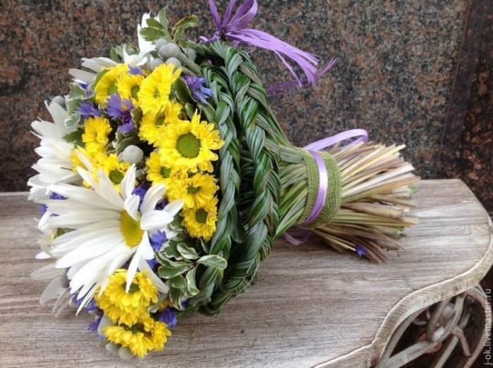 полевых цветов, ромашек, гербер.каллы – это цветы траура Если тема свадьбы позволит использовать в