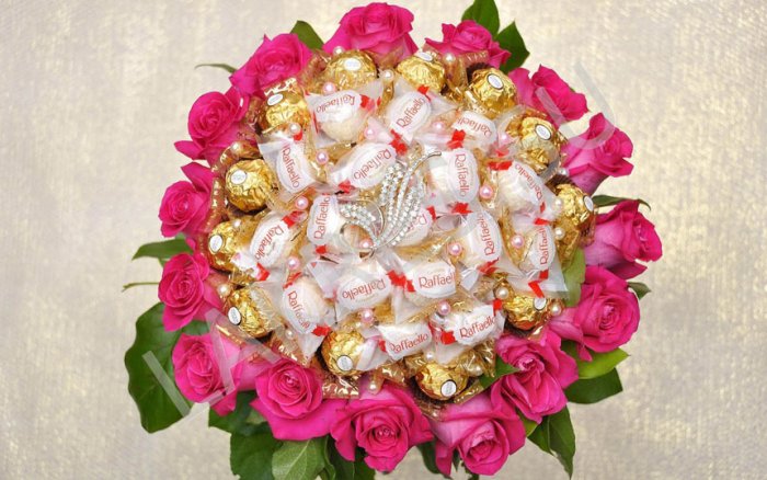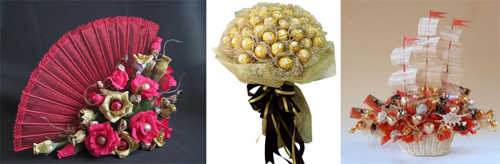 Необычные букеты для свадьбы из конфет