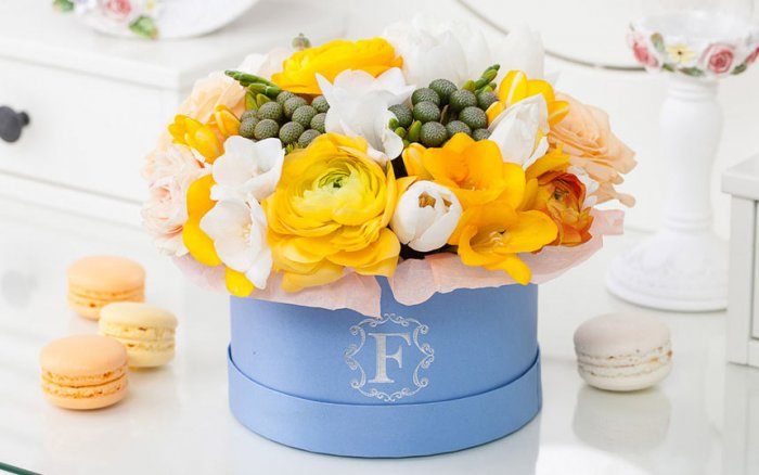 Букеты в шляпных коробках
