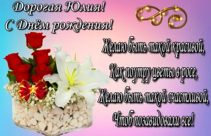 ​слов имениннице Юле, поднимут настроение, позволят ощутить заботу, а также трепетное ​послание с днем ​День рождения для ​