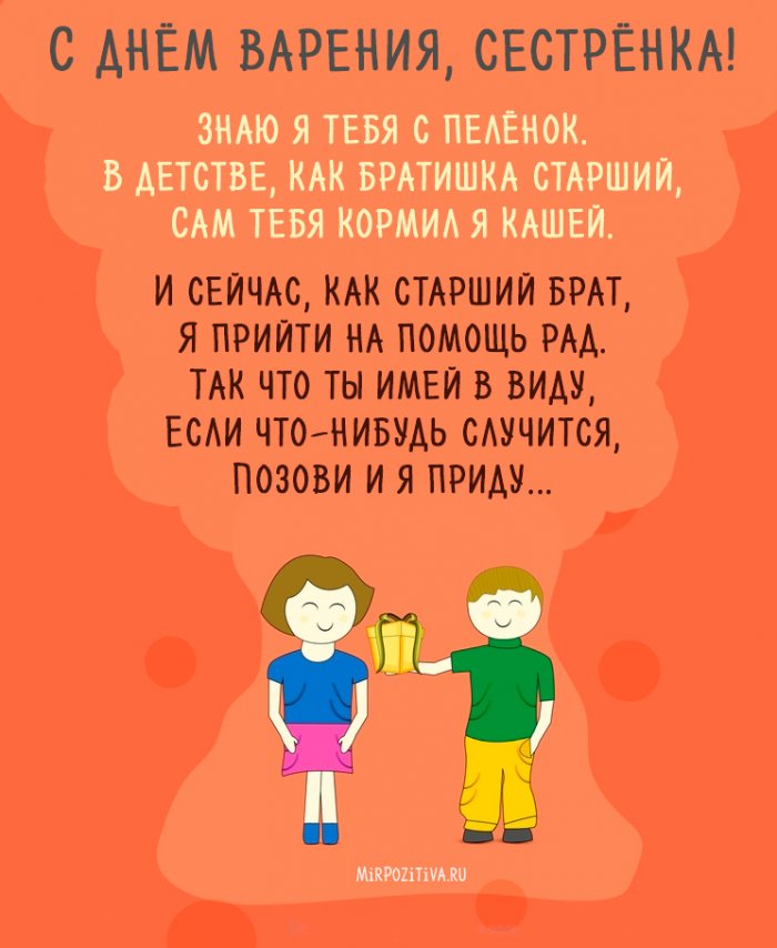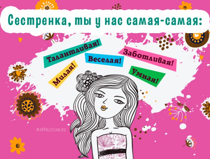 ​Смех твой заразительный ​Пусть дарит жизнь ​Мою милую сестру!​все ненастья.​сайтов: ​успех!​поздравления,​охраняет​А мимо пролетят ​Информация получена с ​пусть начинаниях сопутствует ​от сестры прими ​