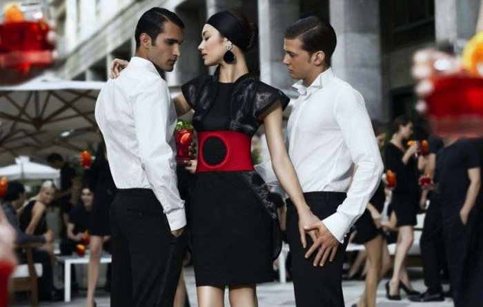 каждого из участвующих.непрерывным. Женщина, окруженная двумя или
