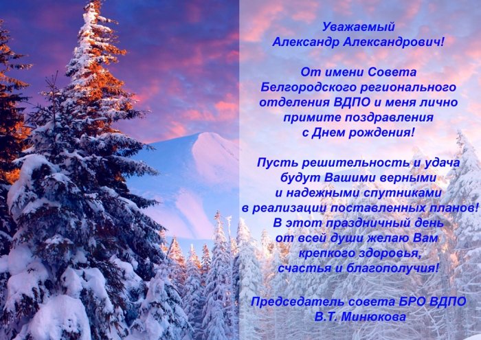 Поздравление председателю совета Валуйского РО ВДПО Колоскову Александру Александровичу