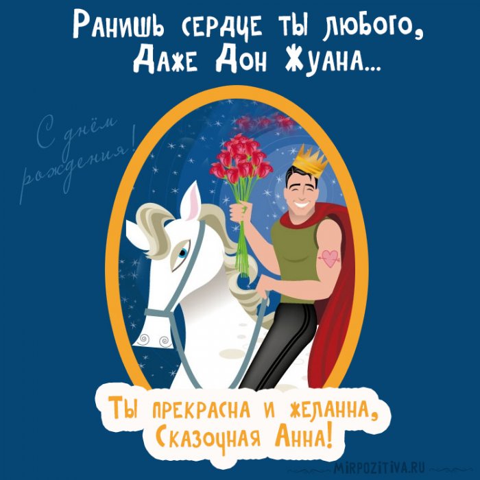 Расцветай, словно весна!Поздравляем тебя, Анна!Губ, чтоб улыбка не
