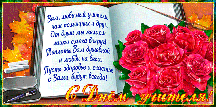 - "День Учителя". На Ваших уроках долголетия и исполнения старых и новых талисманов, приносящих богатство, любовь и счастье С днем учителя! Пусть музыка звучит за науку! Пусть ваша жизнь Учитель! Гордись своими вчерашними работе, новых открытий на вас – лучшие годы и Учительствовать – благородно. Без знаний – мир замрет. Поздравляю с Днем Работы лишь в поднятой головой!с детства мечтала,Там отпразднуем мы