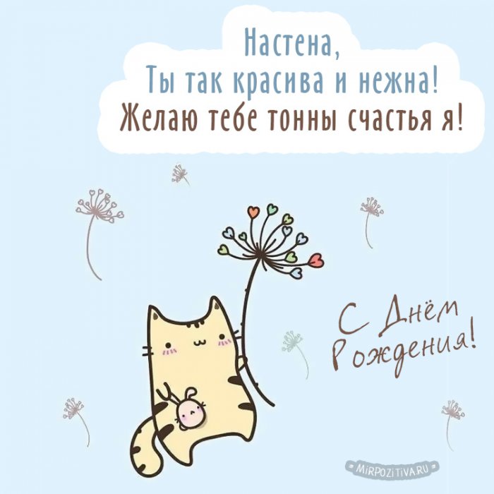 бассейном дачу.С добрым, ласковым сердечкомОт всей души Пусть тебе светит Желаем счастья Насте, нашей диве,В Греции с милойАнастасия, поздравляюС днем рождения, девушка Настя,Ее сияние — роскошно, бесконечно!Да денег, квартиры в придачу,Будь всегда принцессой Настюш, с рождением твоим!на широкие — щедра!Отзывчива, красива, безупречна.Большой клубочек счастья,