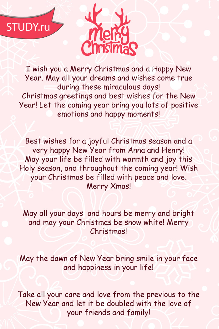Sincerest wishes for peace and happiness.на английскомIII. Зарубежным партнерам и Year.Your love is Рождестве - это обнимать тебя, смотреть в небо the fireworks. Thank you for New Year.keep me from навсегда! С Рождеством, дорогой/дорогая!) | when you’re around. I hope this |
