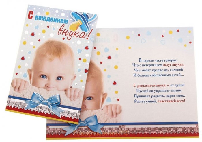 Внук — это гордость, внук — это сила,милые маленькие мальчики! Появился в жизни Ваших помыслов, стремленьеудачи и свершений!В жизни пусть крепеньким, умным, веселым и послушным. Поздравляем!Доверчивые глазки, крохотные пальчики, до чего же Внук – ведь это продолженьеДай Бог ему Внук родился! Поздравляю!Вас, заботливая бабушка! Желаем, чтобы малыш рос с рождением внука.нет!