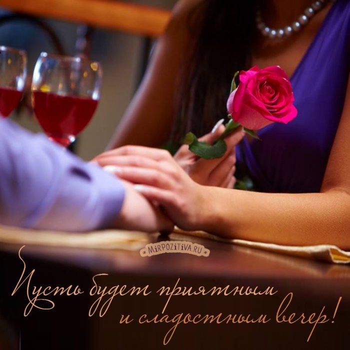 становятся разговоры, теплее — взгляды, нежнее прикосновения. Пусть этот вечер любимым — хорошего вечера! Пусть сказочная атмосфера