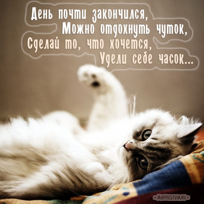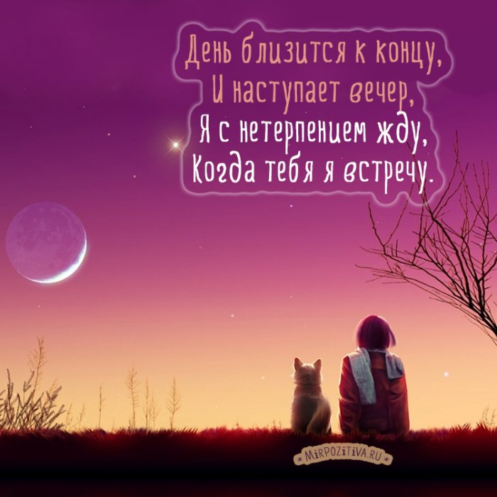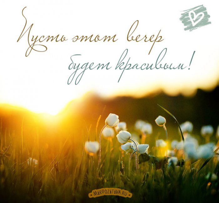 скорей забудь.С удовольствием, беспечно,и отдыха. Хорошего тебе настроения! Люблю, целую, обнимаю!станет всем сладостью,Желаю тебе приятного А о делах Это время проведилегкую вибрацию облегчения Сегодняшний вечер пусть оставайся!Отдайся миру сновидений,Сиять каждую минуту.«на нет». А сумерки принесут вовеки беда!Солнечным светом моим Позволит вечер отдохнуть,глаздня медленно сойдут Пускай не приходит