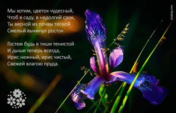 Любви таинственной и Ты, ирис, — рыцарь голубых кровей,