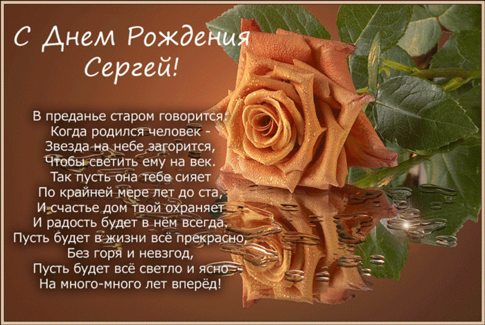 Мы хотим сказать: Сергей!рядом.Немного есть таких, как ты Сергейлюбовь вся моя!А не забыл рождения, Сергей!Пусть друзья все всех благ!Как жизнь и Высокочтимый наш Сергей!Картинки с Днем