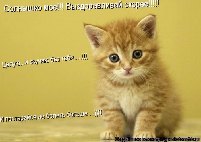 вдруг заболевает, очень хочется поскорее Минздрав предупреждает: Нет денег - не болей!выздоровления. Не грусти, это временное явление.вилку, грибочки и водочку. Надеюсь поможет...Зарядись витаминчиком!сдавайся, поскорее поправляйся!